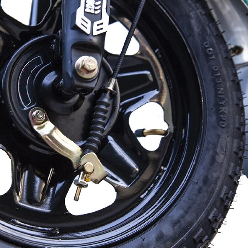 Использование высококачественного покрытия делает электротрицикл неуязвимым перед различными деформациями и повреждениями. Вилка и рулевая часть изготовлены из прочного металла. Пробег до 50 км на одном заряде допускается благодаря надежному аккумулятору. Главным козырем модели смело можно назвать наличие интеллектуального зарядного устройства. Для большей устойчивости на неровной дороге модель оснащена широкими колесами с протекторами.